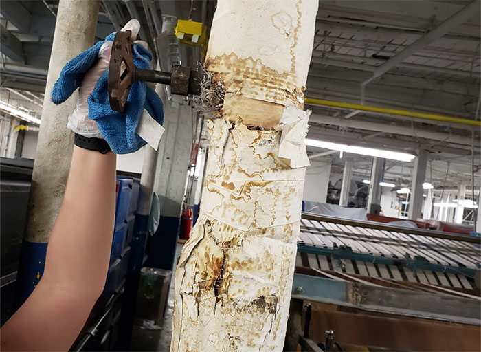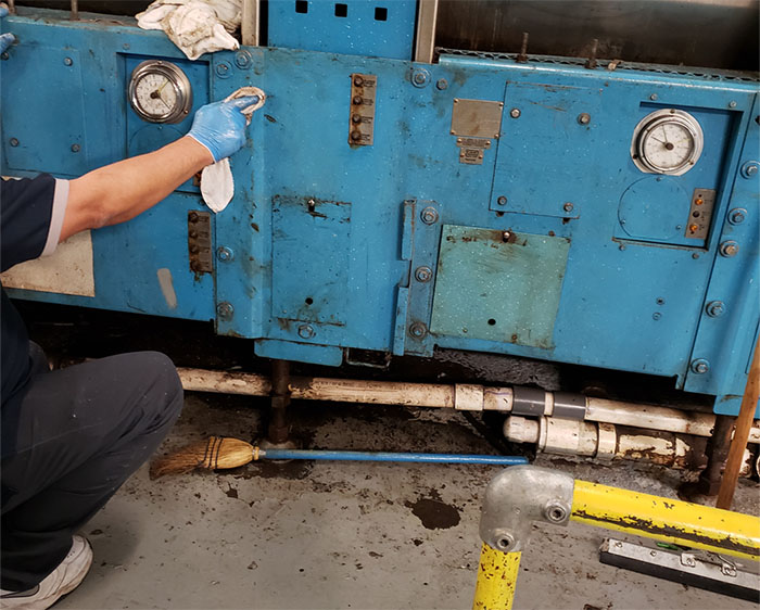 Images capturing our cleaning and disinfecting experts hard at work sanitizing a laundry processing plant.