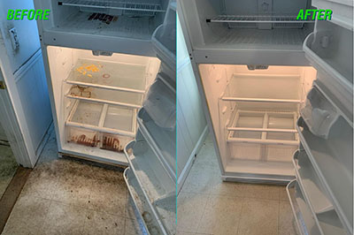 Take this before and after refrigerator: there was a time when mom would never have let this happen. Now is not that time! We get it. We don’t judge because when it comes to messes—more specifically how it happens, we’ve been there/done that. Our job is to help get things back to normal.